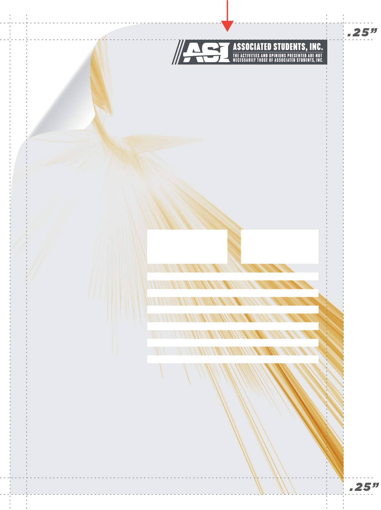 • The ASI Club & Org logo should be place at either the upper or lower right corner of the publication.